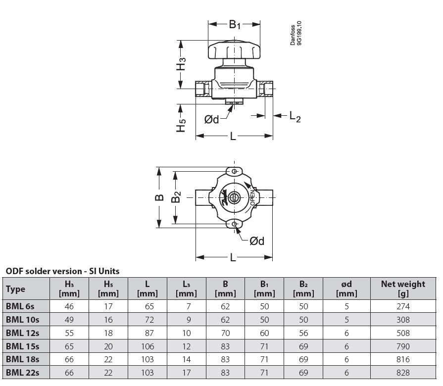 Схема-чертеж запорного вентиля Danfoss BML 22s 009G0191: