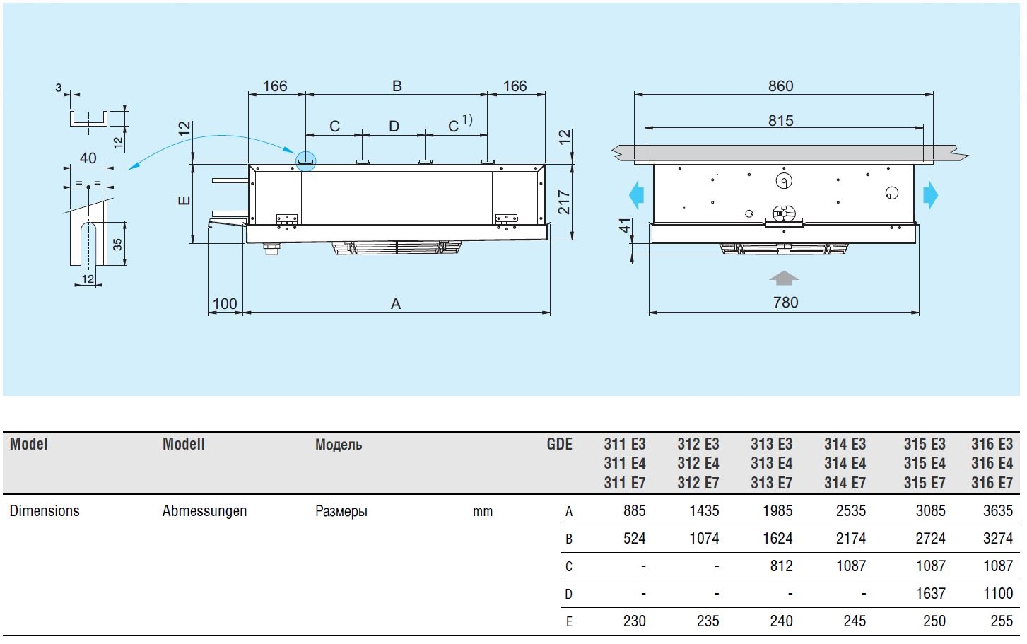 Схема-чертеж воздухоохладителя Eco GDE 311E4 ED: